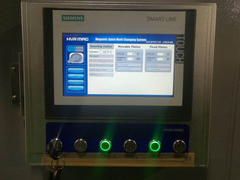 電動永磁快速換模系統(tǒng)主要為傳統(tǒng)的注塑機,沖床,合模機設(shè)計,合模時間長,操作復(fù)雜,安全性低。 簡單的裝料和消磁動作后,就可以將模具夾緊并更換,確實縮短了換模時間。